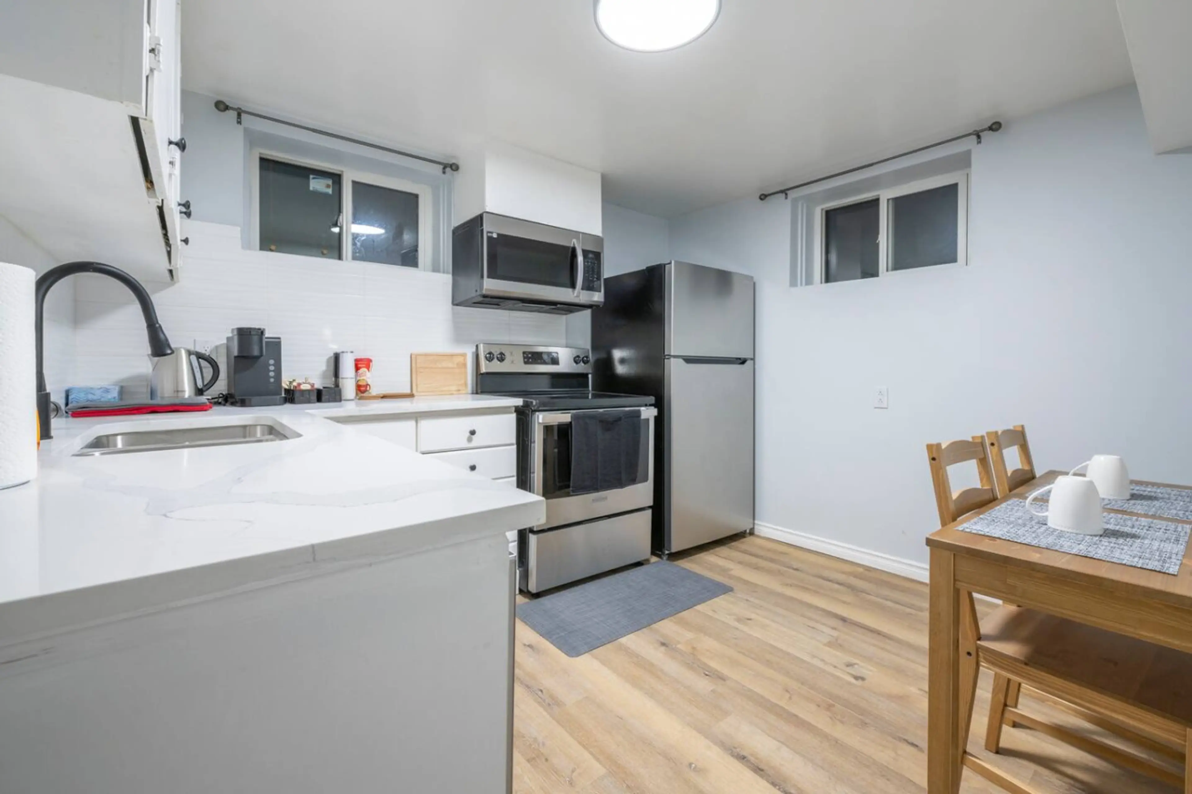 Modern, comfortable, great for families, professionals & anyone seeking peaceful convenience! Fully furnished 2BR home with private entrance, huge yard & balcony. All-new appliances, in-unit laundry, high-speed WiFi. Perfect family location: walk to schools, playground, groceries & transit (2-min to...